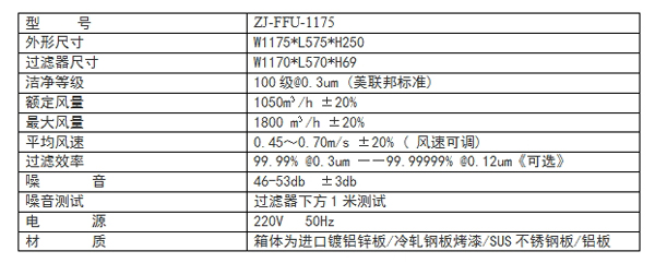 (ZJ-FFU-1175技術參數)