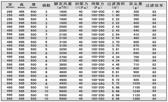 過濾效率:G1:40%@5.0μm、G2:65%@5.0μm、G3:85%@5.0μm、G4:90%@5.0μm(計重法);